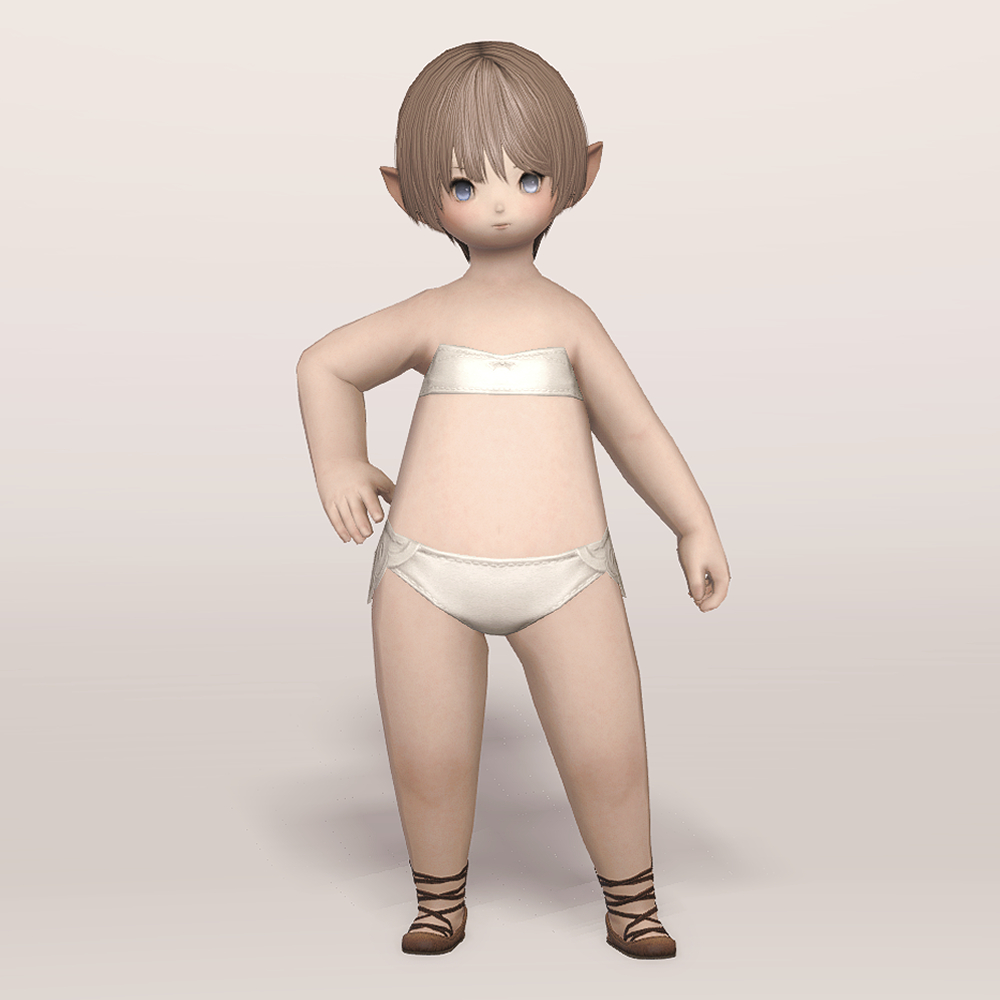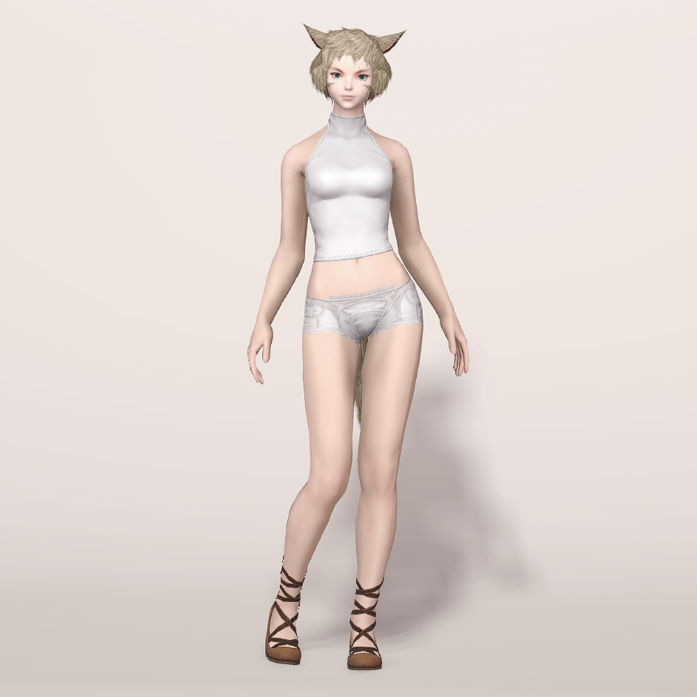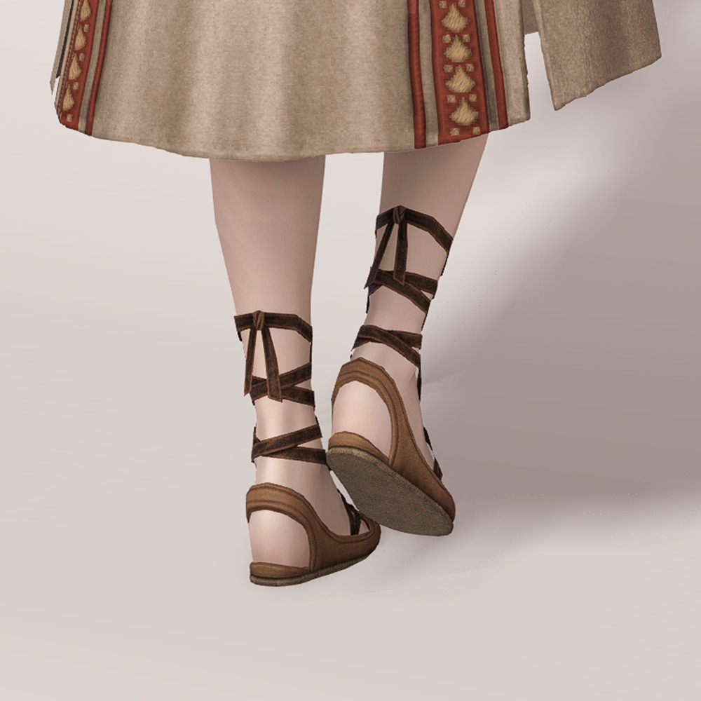 파판14의 유일한 레이스업 신발인 신부 들러리 신발을 이을 새로운 레이스업 신발입니다. 시원해 보이면서도 가죽의 질감이 느껴져 해변뿐 아니라 일상에서도 자주 신을 법한 샌들입니다. 최신 버전답게 예쁘게 나온 쉐입과 여름 샌달답게 뒤축부분을 시원하게 만들어줘 여름 기분이 절로나는 단아한 신발입니다. 장식끈이 염색되지 않는 것은 조금 아쉽네요.