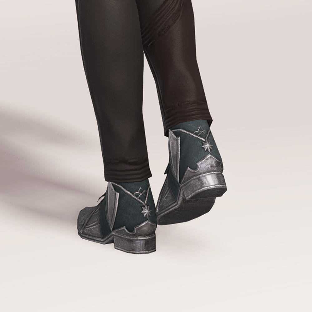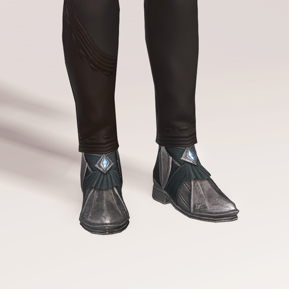 6.3 업데이트 환희의 신역 에우프로시네에서 만나볼 수 있는 판금장화에 가까운 신발입니다. 영문으로 shoe라고 표기된 것으로 보아(판금장화일경우, 영어로 sabaton 혹은 solleret으로 표기됨.)판금장화에 속하는 신발은 아니나 일부는 천, 일부는 판금으로 이루어져있어 정장에 가까운 느낌으로 깔끔하게 나온 전투화라고 볼 수 있을 것 같습니다. 발등의 천장식과 함께 보석장식으로 정리된 부분이나 뒷굽의 섬세한 장식이 특징이며, 천 파츠가 메인이 되는 느낌으로 드레이프 천을 중심으로 만들어진 의상과 매치하는 것을 추천드립니다.