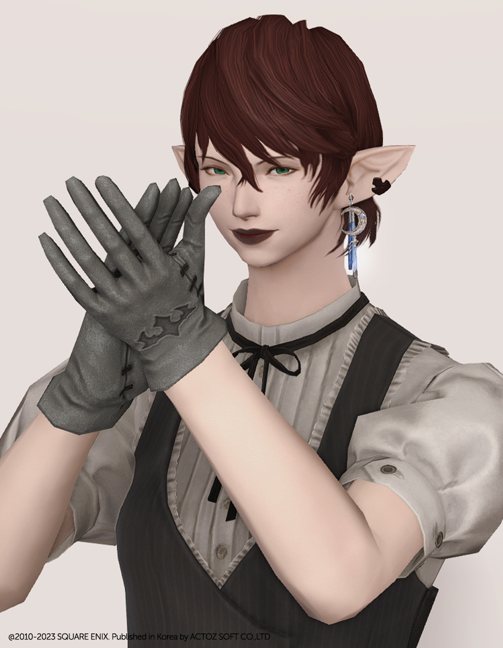 엄지부분이 스테이플러로 이어져있는 고무장갑입니다. 전체적인 의상 테마가 의사인만큼, 고무재질의 텐션이 느껴지는 장갑입니다. 이음매 부분이 특징적으로 이전 수호천절 룩과 함께 조합하기 좋아보입니다.