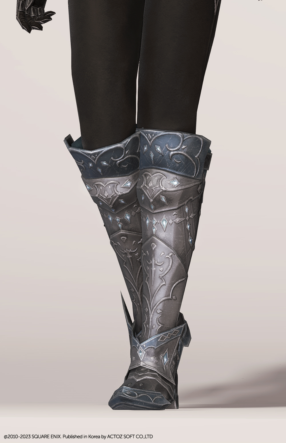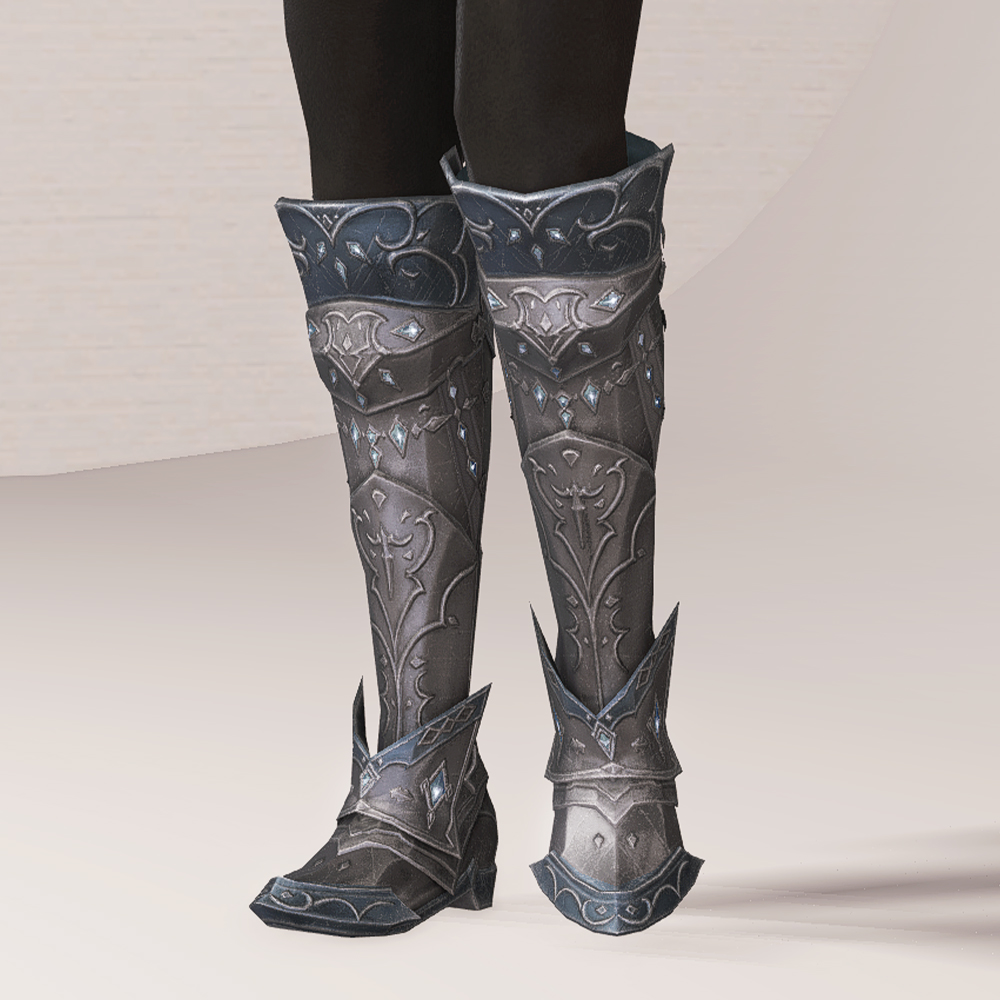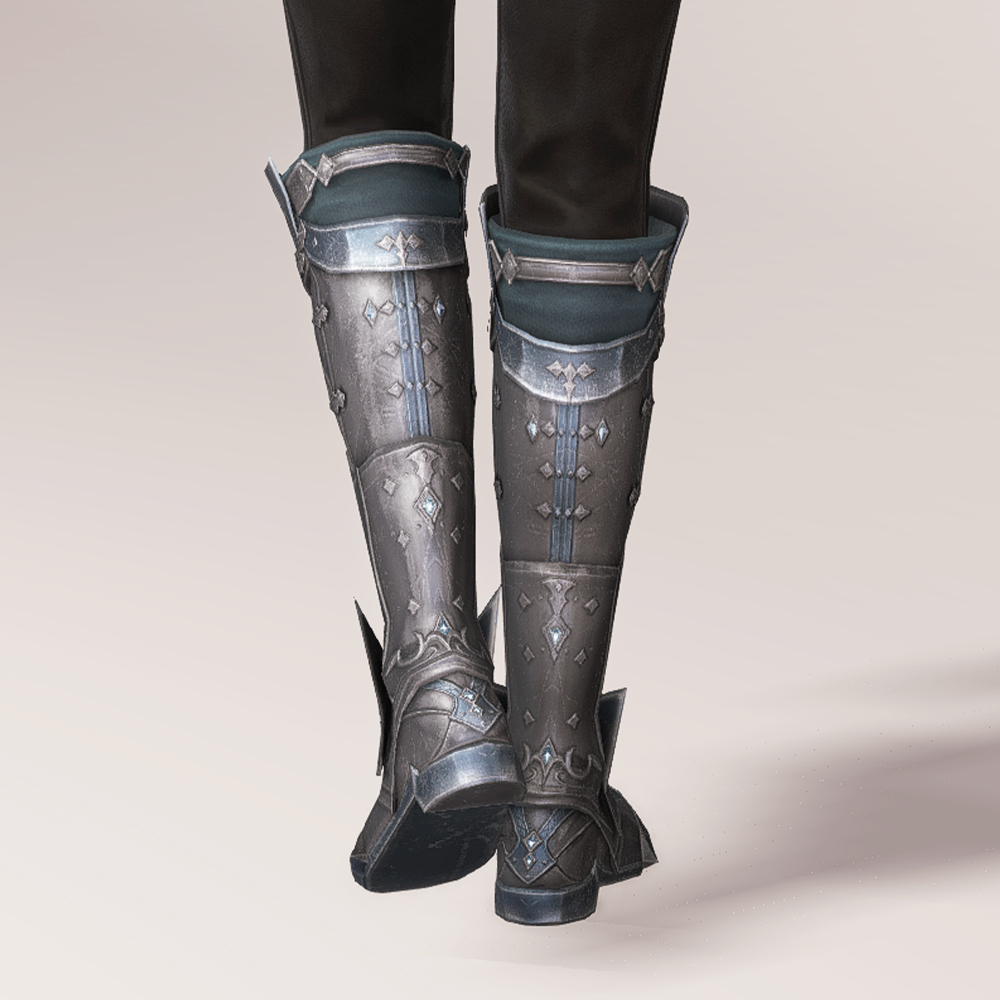 6.3 업데이트 기쁨의 신역 에우프로시네에서 만나볼 수 있는 판금장화입니다. 투박하지 않고 깔끔한 라인에 보석 장식이 다른 직업에 비해서 수수한 느낌으로 나와 은빛 갑주 신발이 필요했다면 이 판금장화를 추천드립니다.
