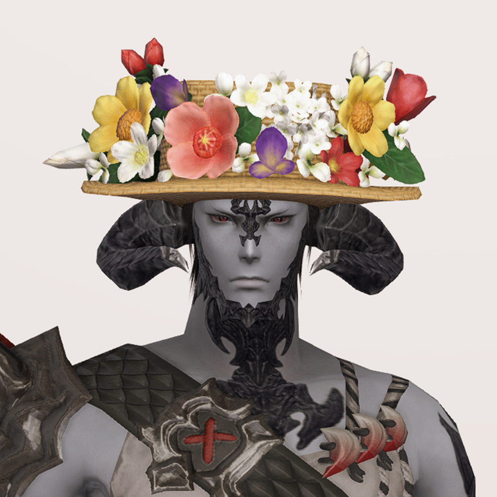 계절과 상관없이 화사한 꽃으로 분위기를 업할 수 있는 모자입니다. 소박한 느낌의 밀짚모자에 각종 화려한 꽃을 모자에 꽂아 장식한 형태로, 머리크기와 상관없이 거대한 챙으로 비율을 커버해주는 장점이 있습니다. 어떠한 룩에도 존재감이 뛰어나 색이나 디테일등이 좀더 심플한 느낌의 옷을 코디하기 좋습니다.