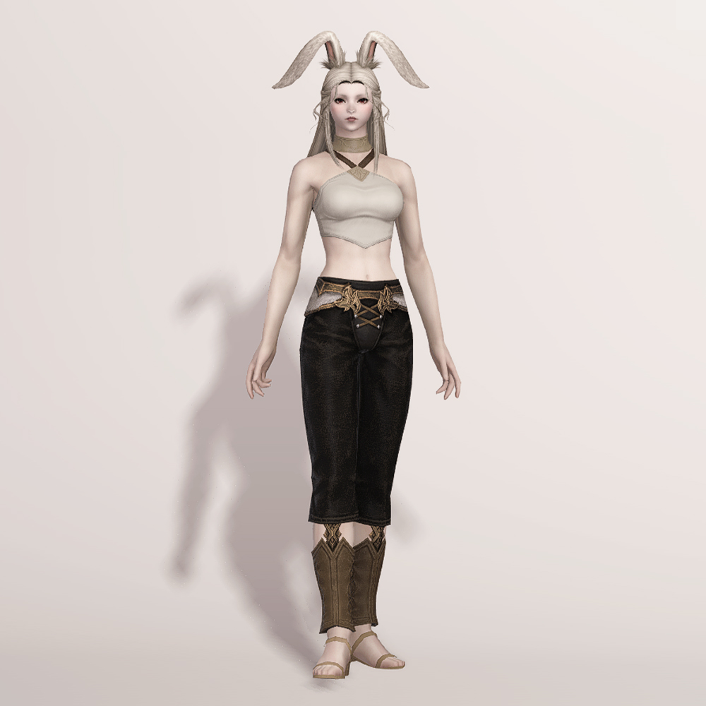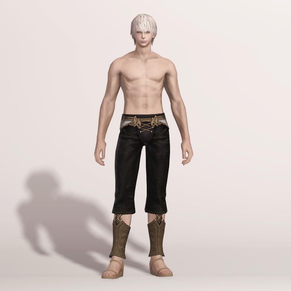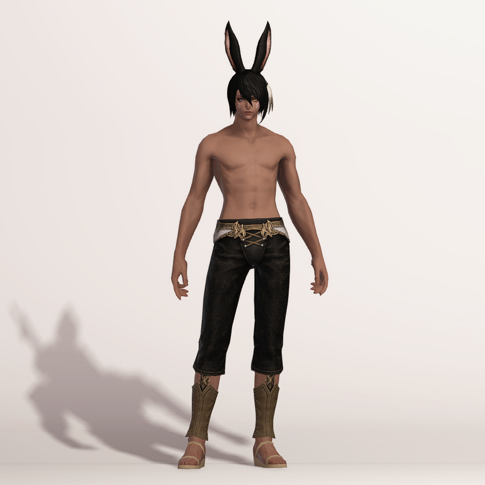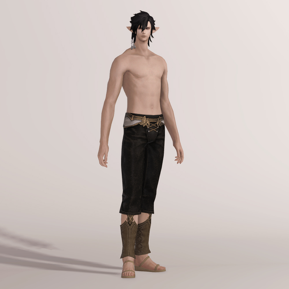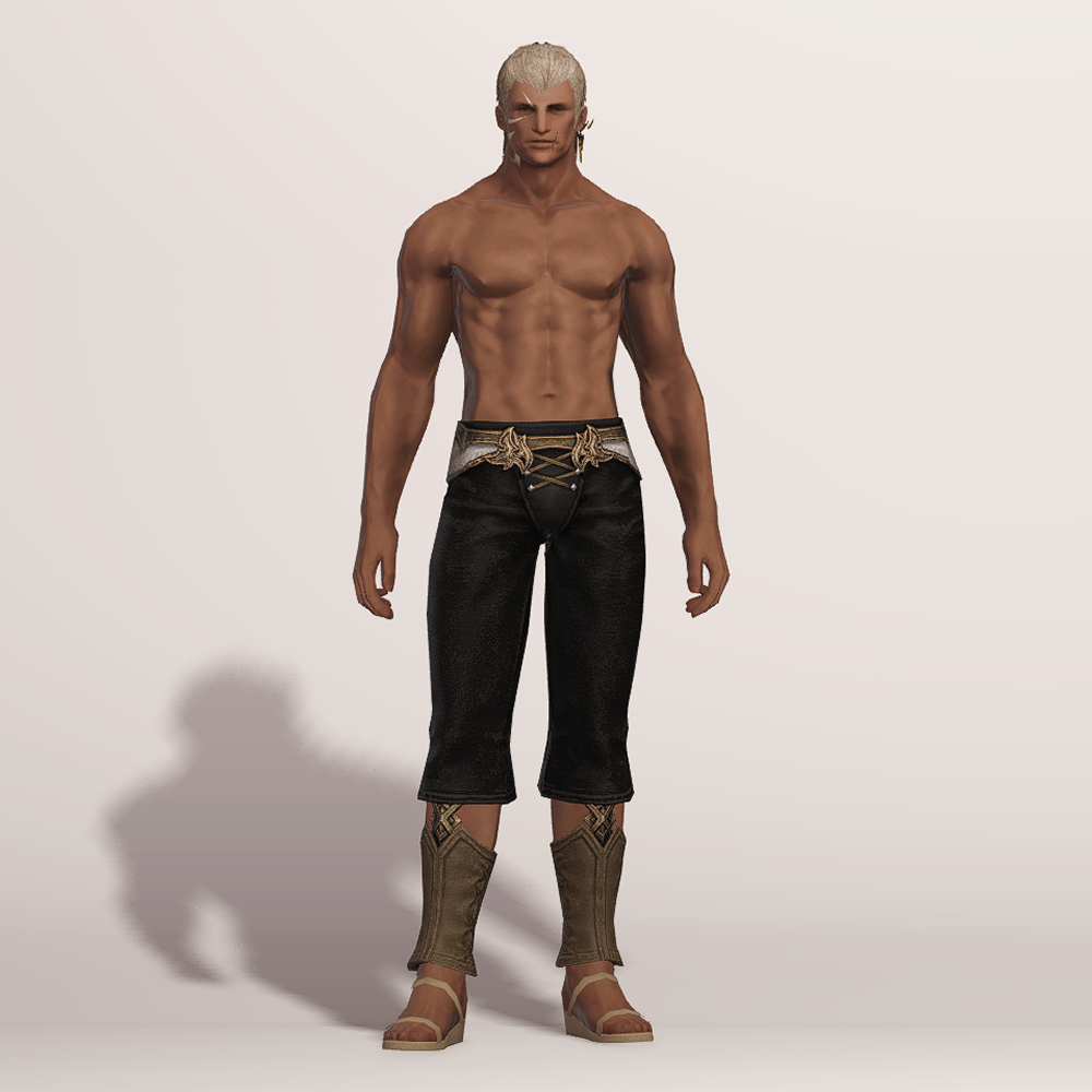 서블리가와 발목의 가죽장식의 2콤보로 아직 매치할 수 있는 조합을 찾지 못한 바지입니다. 발목의 가죽장식을 살리고, 소집자 상의처럼 코드피스 부분을 가리는, 기장이 긴 상의와 매치하기 좋겠습니다.