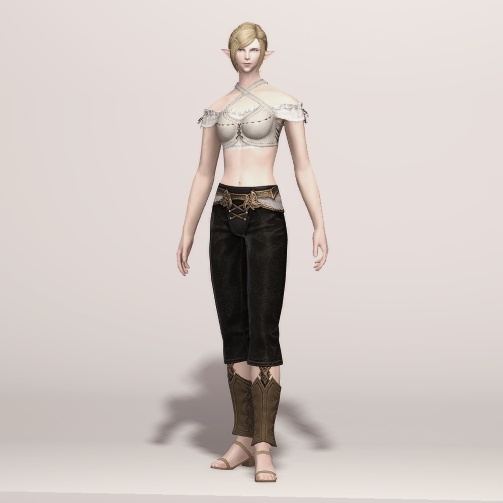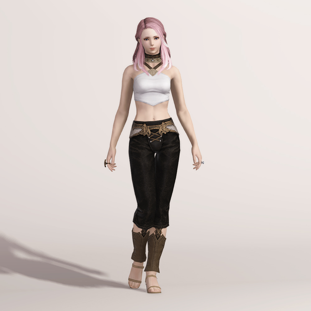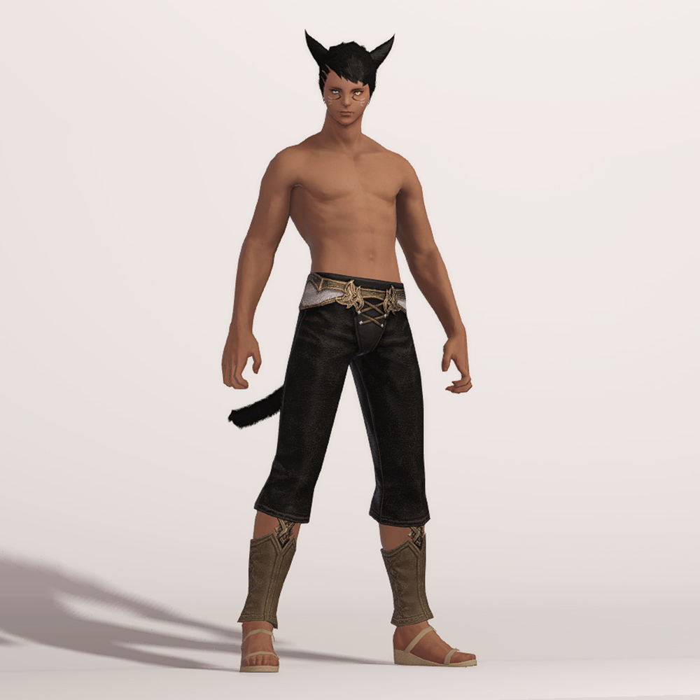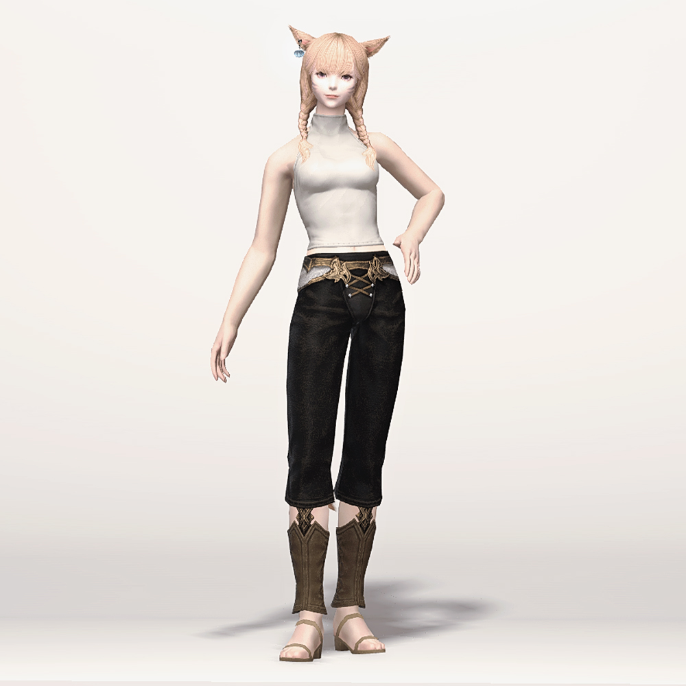 서블리가와 발목의 가죽장식의 2콤보로 아직 매치할 수 있는 조합을 찾지 못한 바지입니다. 발목의 가죽장식을 살리고, 소집자 상의처럼 코드피스 부분을 가리는, 기장이 긴 상의와 매치하기 좋겠습니다.