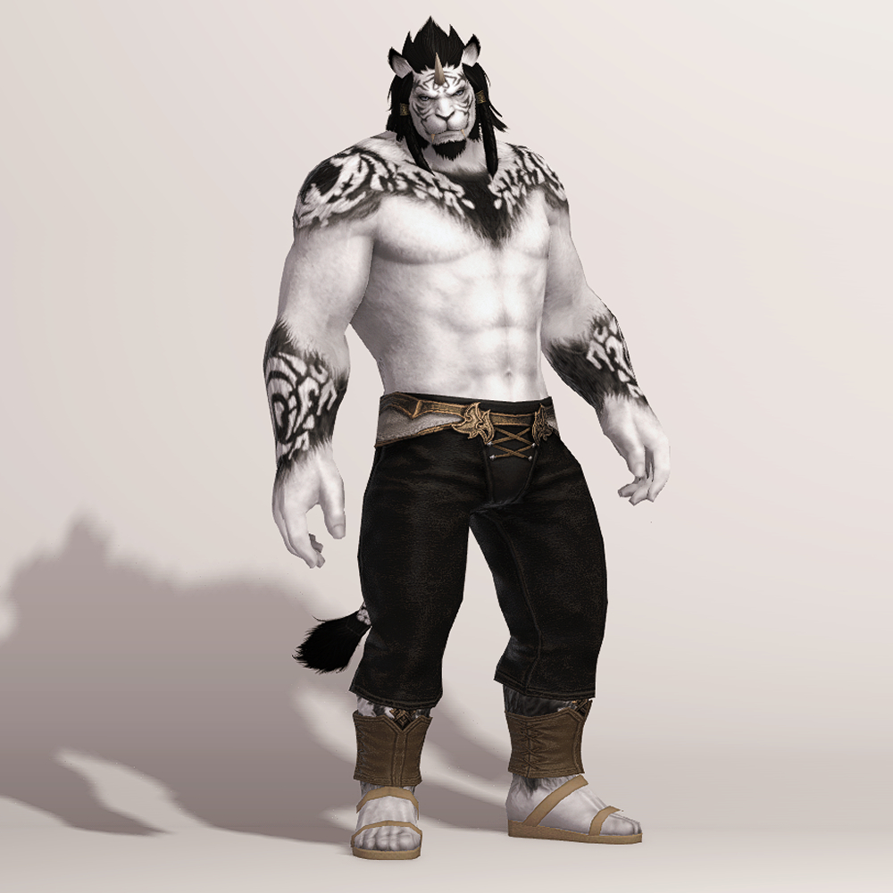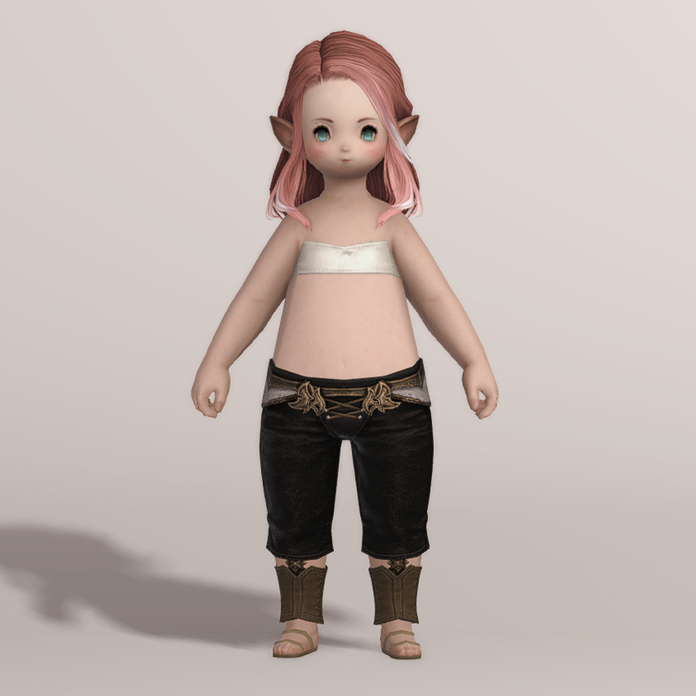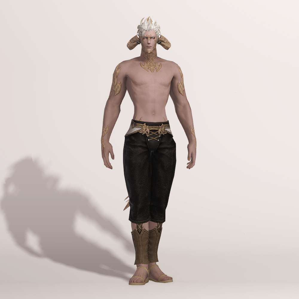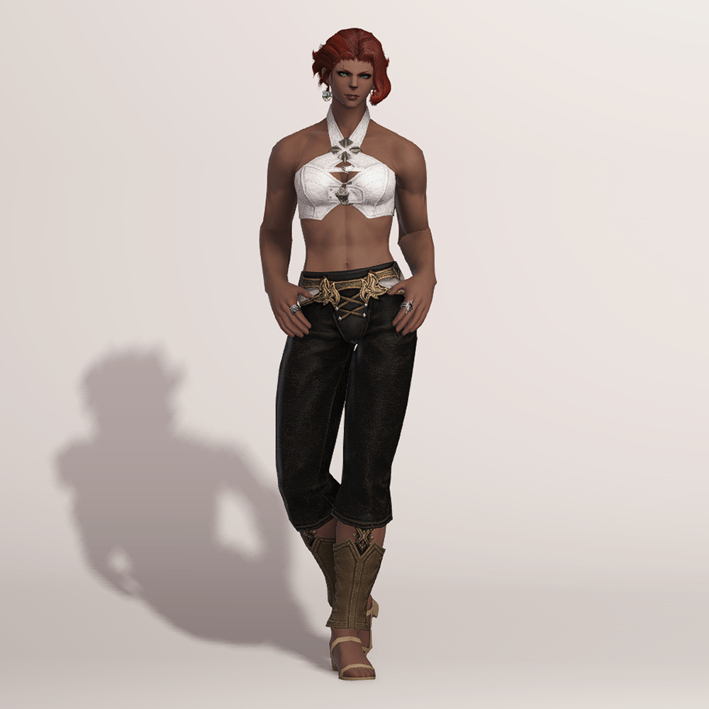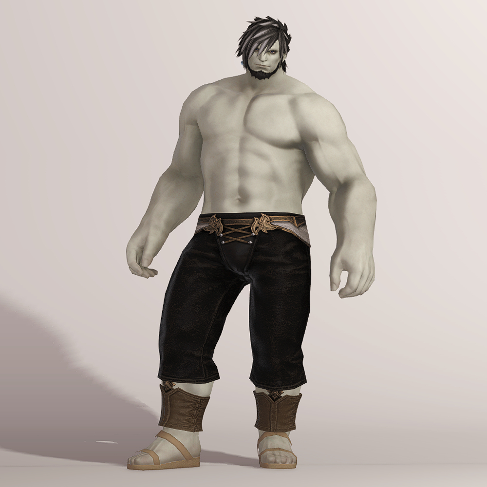 서블리가와 발목의 가죽장식의 2콤보로 아직 매치할 수 있는 조합을 찾지 못한 바지입니다. 발목의 가죽장식을 살리고, 소집자 상의처럼 코드피스 부분을 가리는, 기장이 긴 상의와 매치하기 좋겠습니다.