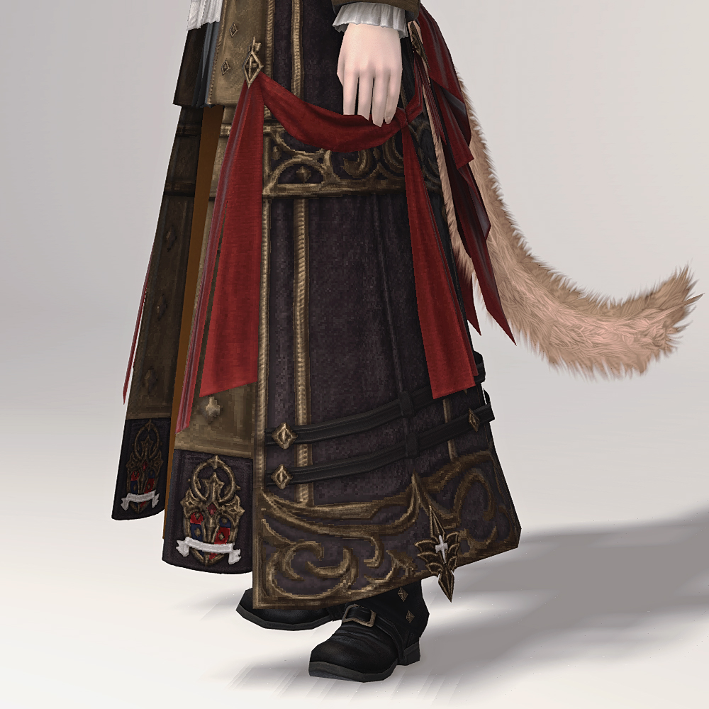 예로부터 학자 잡룩은 옳았다. 교복과 정장, 거기에 고급스러운 장신구 디테일까지 장점만 고루챙긴 예복 상의입니다. 활동성과 마법 효율을 동시에 고려한 긴 기장의 코트로 이루어진 의복으로, 빨간 리본으로 포인트를 주어 사랑스러움까지 완비했습니다. 고급스러운 문양으로 곳곳에 에테르 전도율을 높이는 섬유로 문양이 새겨져있어, 마법 문양의 효과로 마력을 높였으며, 학자라면 뺴놓을 수 없는 필기구 수납 주머니까지 알뜰하게 챙겼습니다.