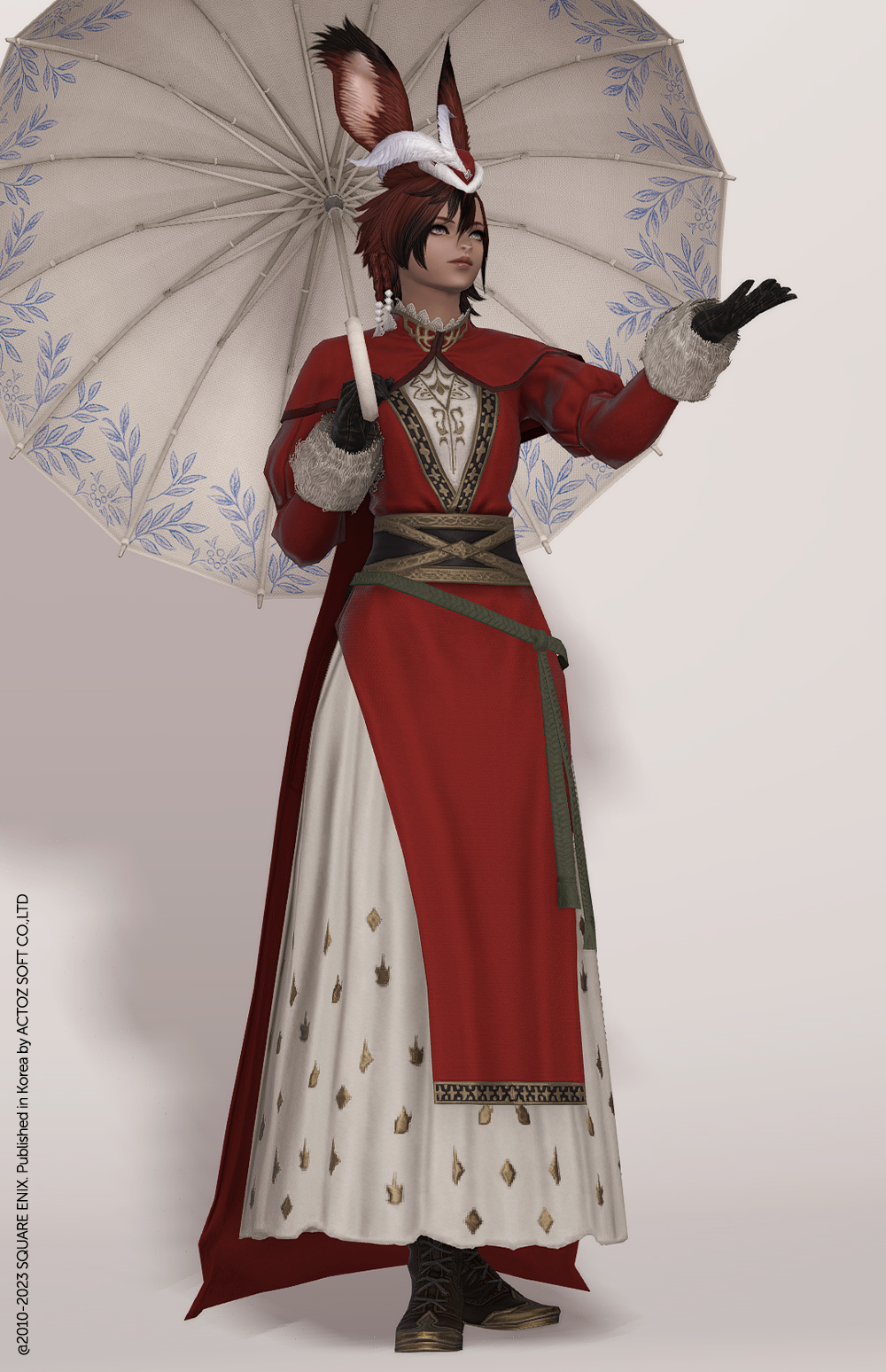 염색 시 치마의 은색 장식이 금색으로 변경되며 밝은 회색천 부분이 전부 염색됩니다. 허리끈의 색은 염료색에서 어두운톤으로 변경됩니다.