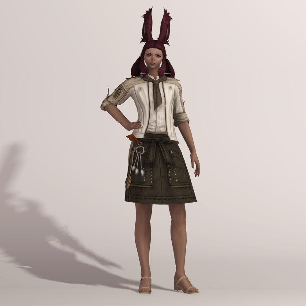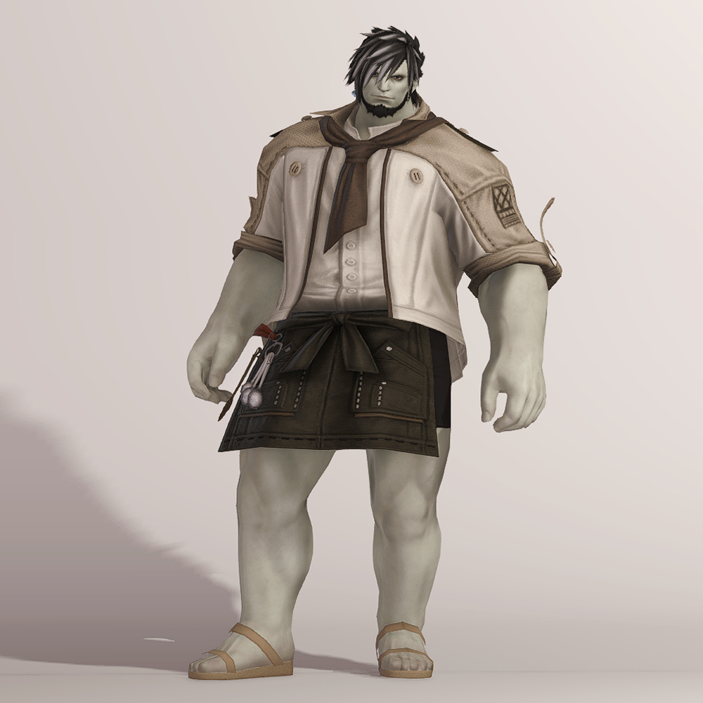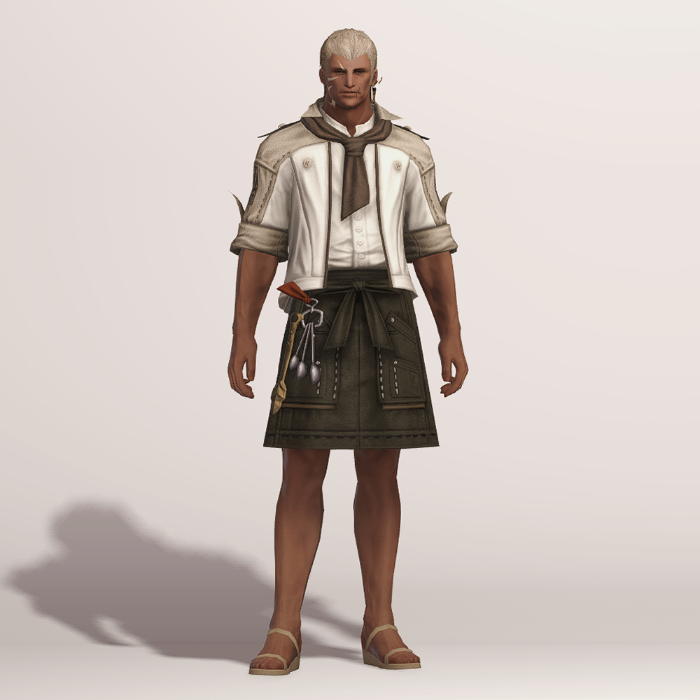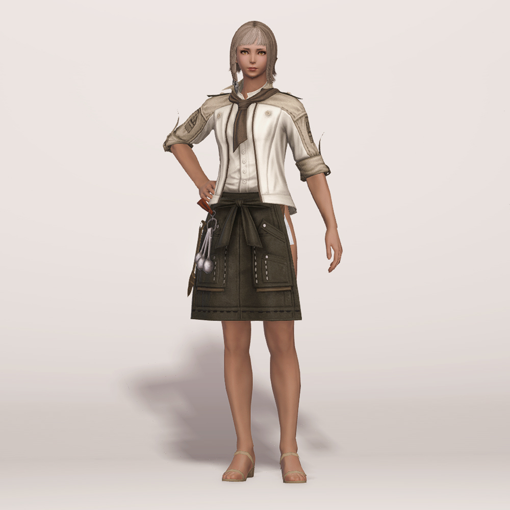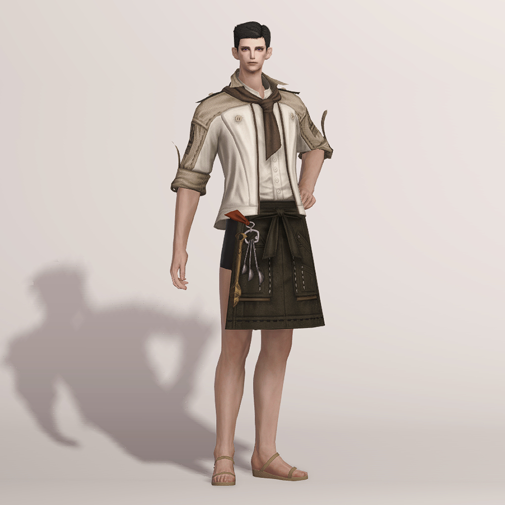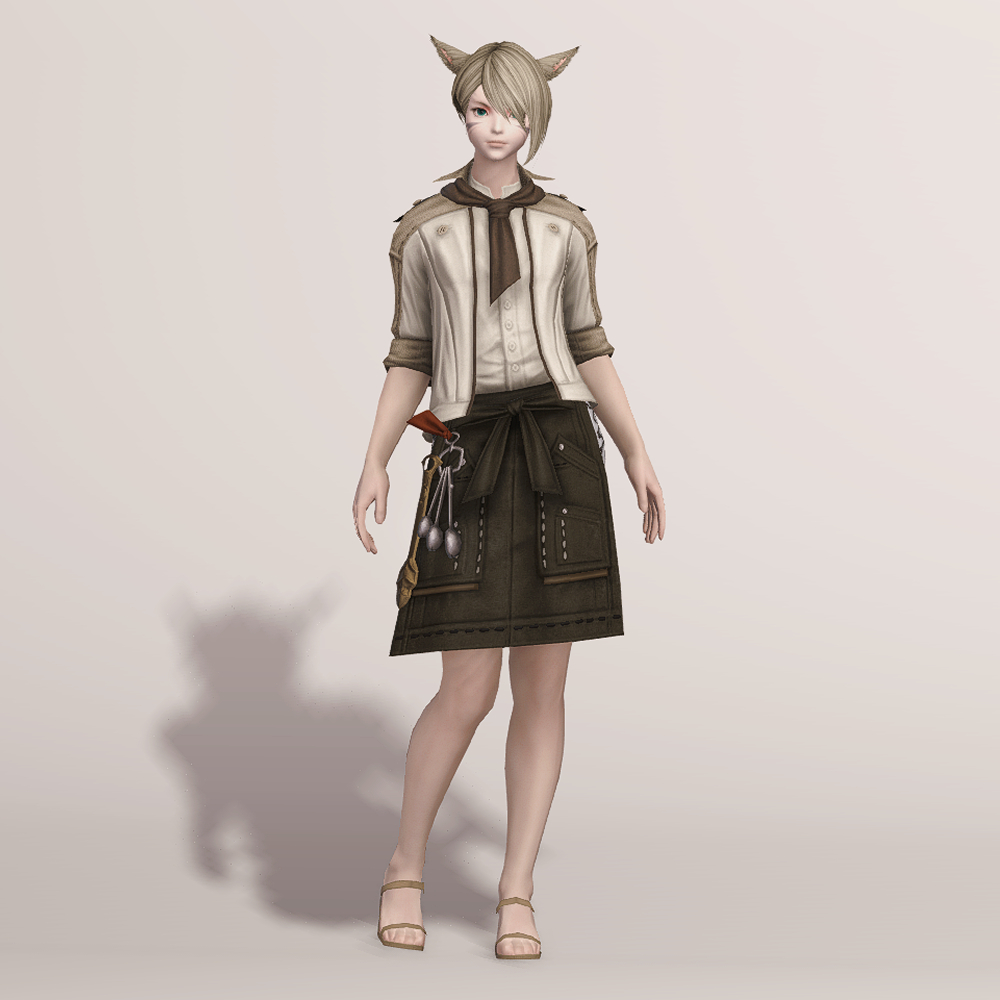 살짝 캐주얼한 느낌이 가미된 조리복으로, 패스트푸드점 매니저로 코스프레할 수 있을 것 같은 느낌의 잡룩입니다. 활동성이 좋게 소매와 허리를 잡아주었고, 앞치마엔 각종 개량스푼과 주머니로 편리함을 높였습니다.