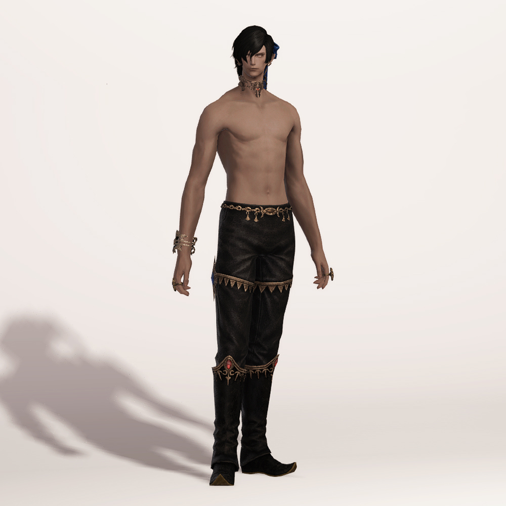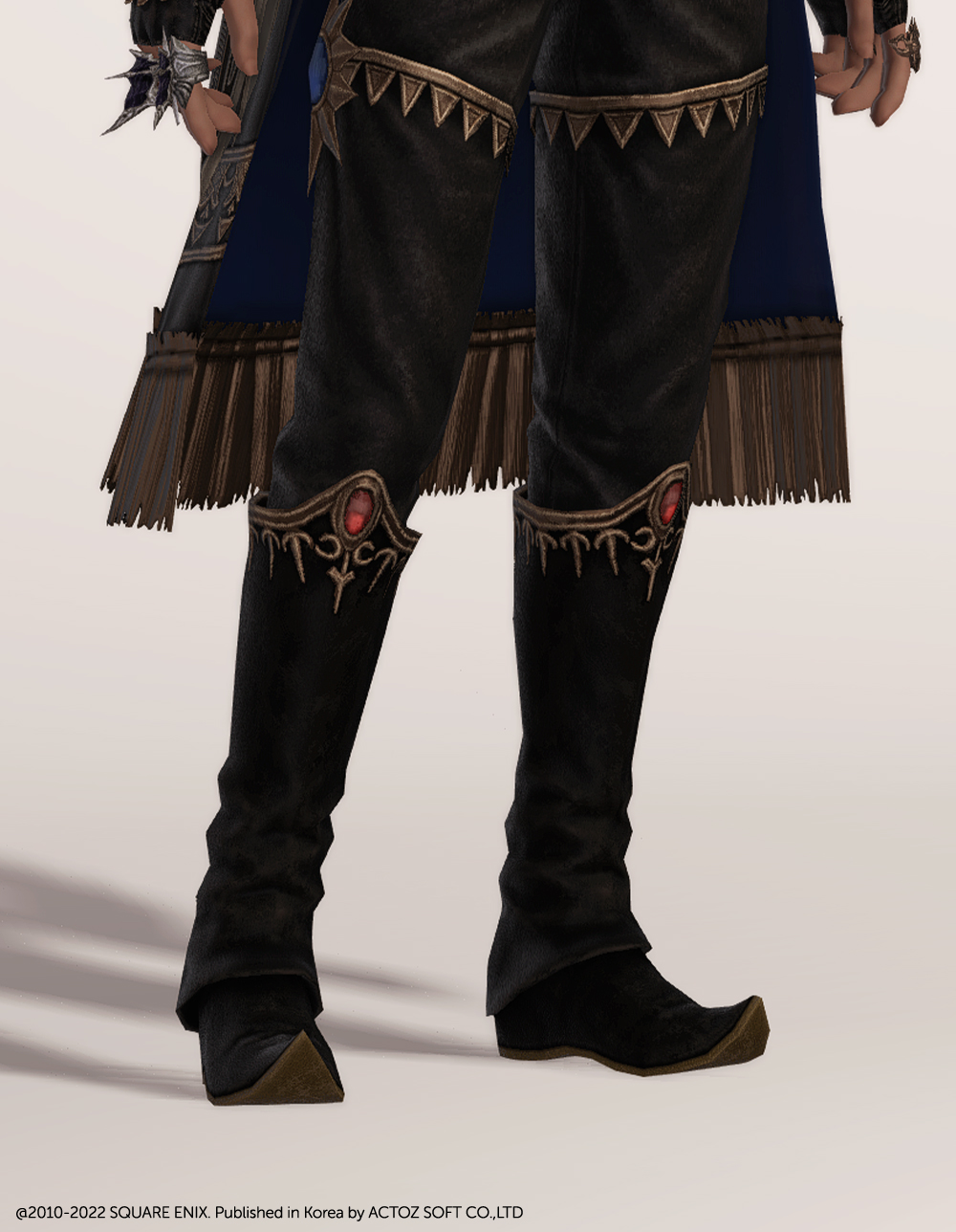 구두위에 워머가 올라간듯한 독특한 디자인의 무도가 잡룩 장화입니다. 전체적인 장식은 동일하나, 여캐는 발등이 덮인 구두로 외형의 차이가 있습니다.