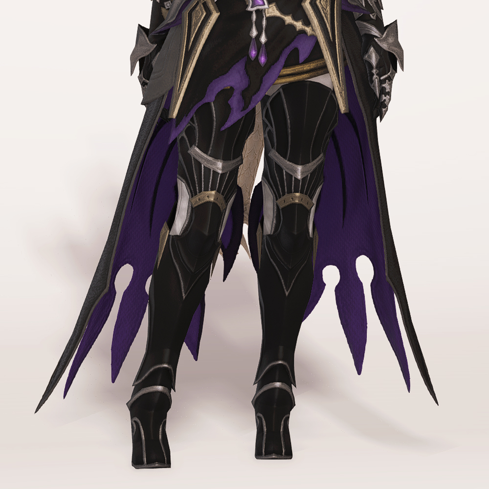 움직임에 방해가 되지 않도록 무릎 뒤는 비우면서 동시에 발목을 단단히 잡아주는 판금장화입니다. 허벅지 위로 올라온 철판은 부드러운 곡선 형태로 다듬어져 있는 동시에 본체와는 다른, 밝은 색의 금속들로 새긴 문양들이 날렵한 이미지를 줍니다. 전체적으로 갑옷의 느낌이 덜한 느낌을 찾으신다면 한번쯤 고려해봐도 좋을 것 같습니다.