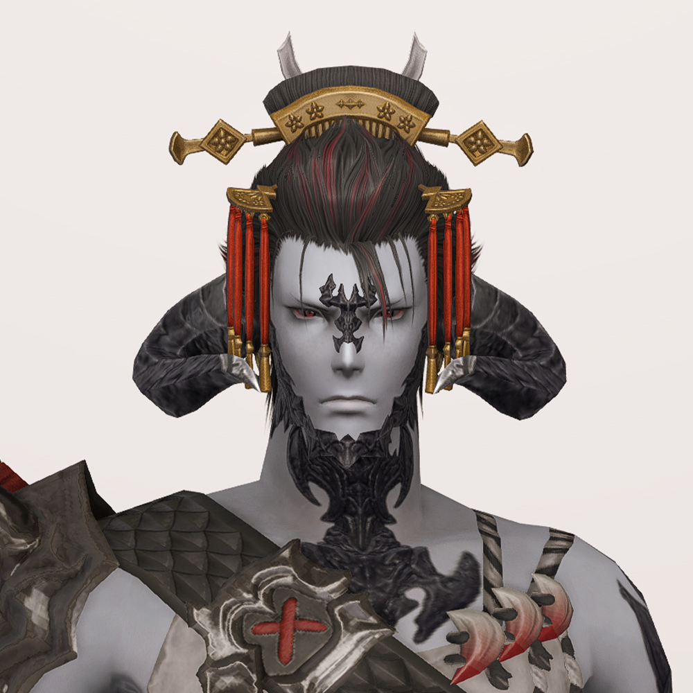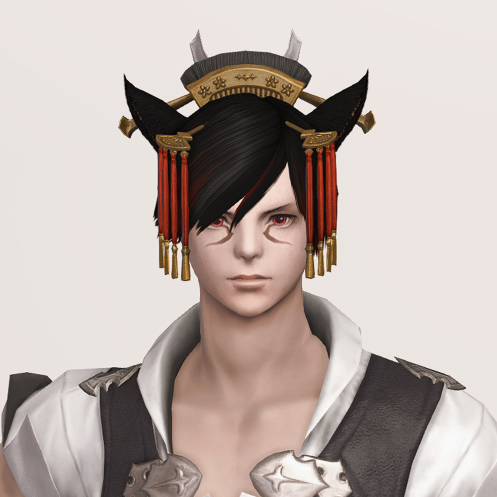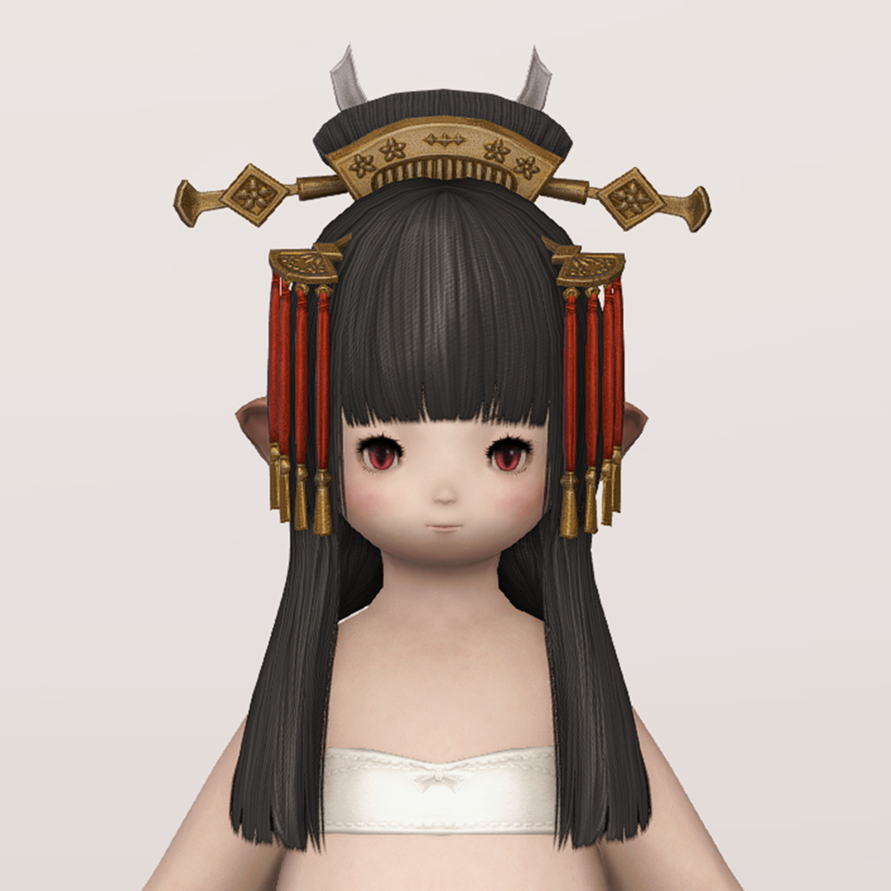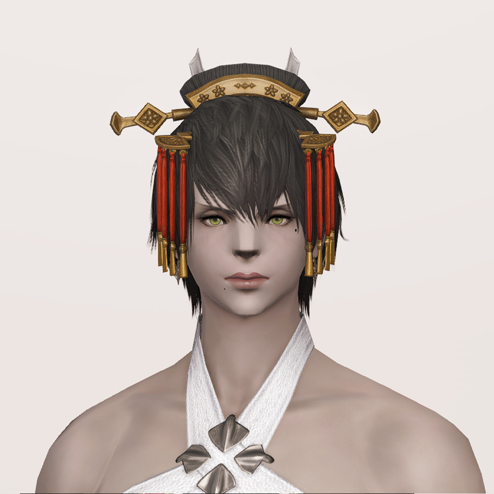 비녀들과 얼레빗으로 구성된 화려한 머리꽂이입니다. 머리 뒤쪽에 고정시킨 특이한 모양의 상투(마게)를 중심으로 조각된 얼레빗(마에쿠시)과 굵은 비녀(코가이)를 꽂아 고정 겸 장식으로 사용한 것이 특징적입니다. 겸사겸사 머리 앞쪽을 향하게 비스듬하게 꽂은 장식비녀(비라칸)로 각도에 따라 얼굴의 일부가 가려져 신비로운, 또는 고혹적인 이미지를 연출하기에도 제격입니다.