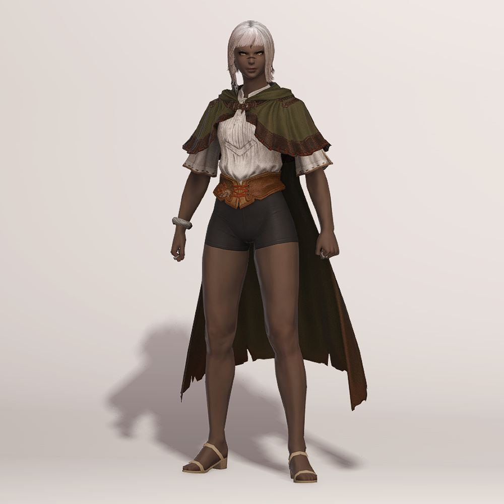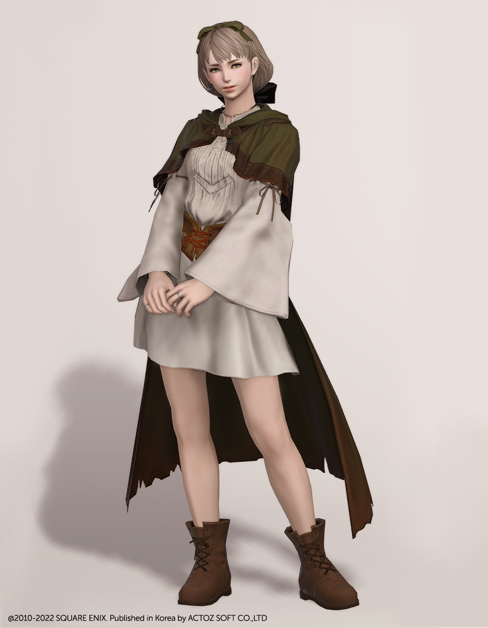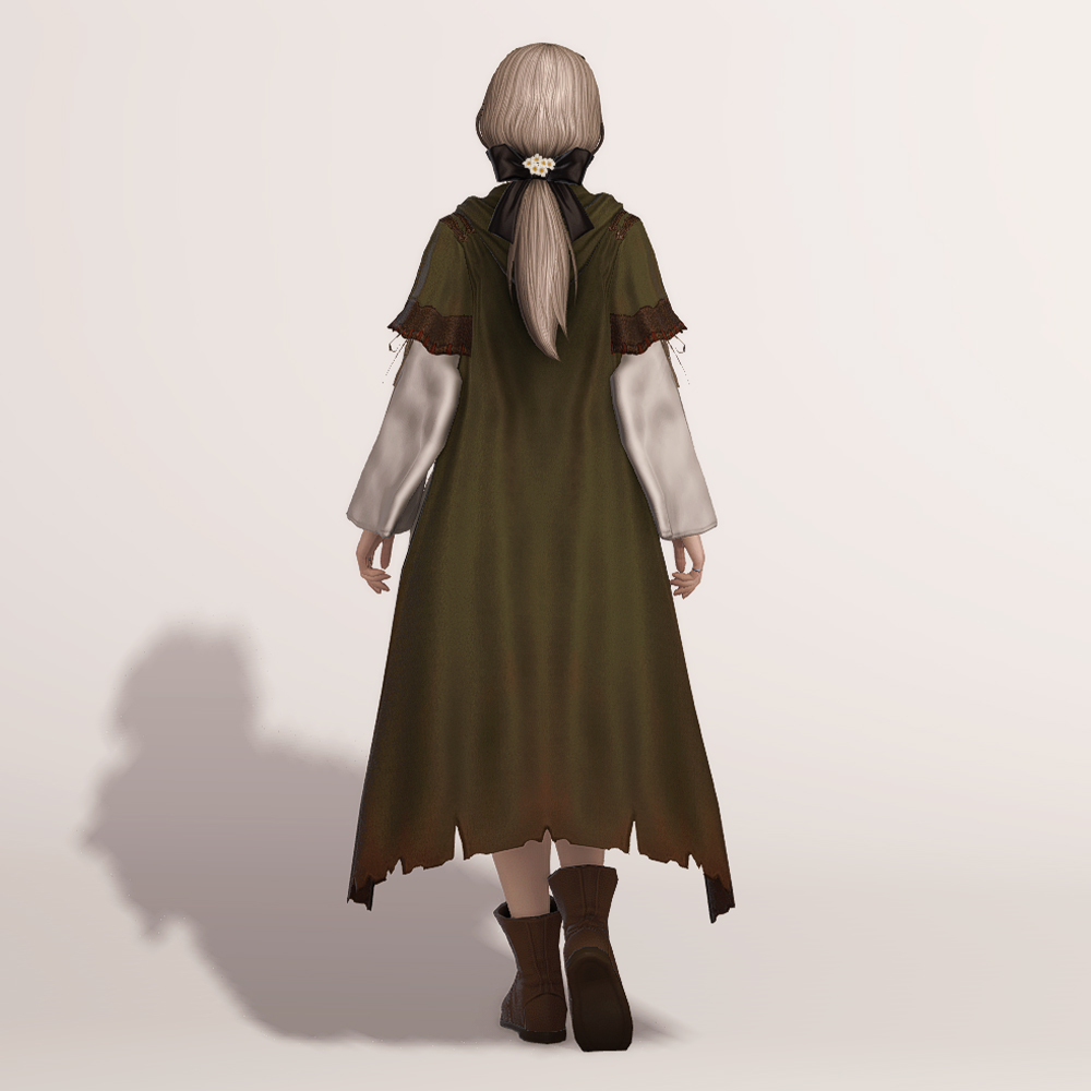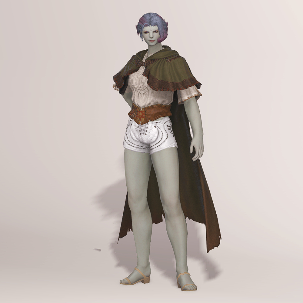 일상복 코디를 좋아하신다면, 절대로 놓치면 안될 케이프망토입니다. 어깨에 잡힌 러플부터 허리의 가죽에 놓인 꽃무늬까지 놓칠 부분이 없는 디테일이 가득합니다. 원래 짧은 소매 옷이나 사베네어 팔덮개, 고위 소환사 팔덮개(두더지 색으로 염색시 염색X의 블라우스색과 동일)등 소매가 긴 팔 장식 아이템과 매치하는 것도 추천드립니다.