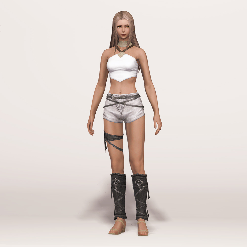 변옥의 한줄기 빛, 학살자 하의입니다. 허벅지 부분의 링 가터나 허리의 스트랩부분 등의 디테일이 상당히 매력적으로 깔끔한 상의나 판타지스러운 상의와 매치하기 좋겠습니다. 정말 아쉽지만 남캐는 긴바지입니다.. 다행인것은 천 면적만 다르다는 것으로 포인트를 활용하여 매치할 수 있는 방안이 많을 것으로 기대됩니다.