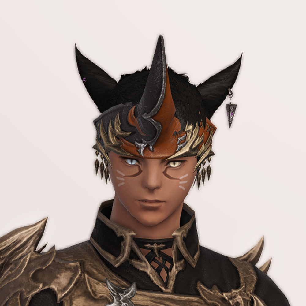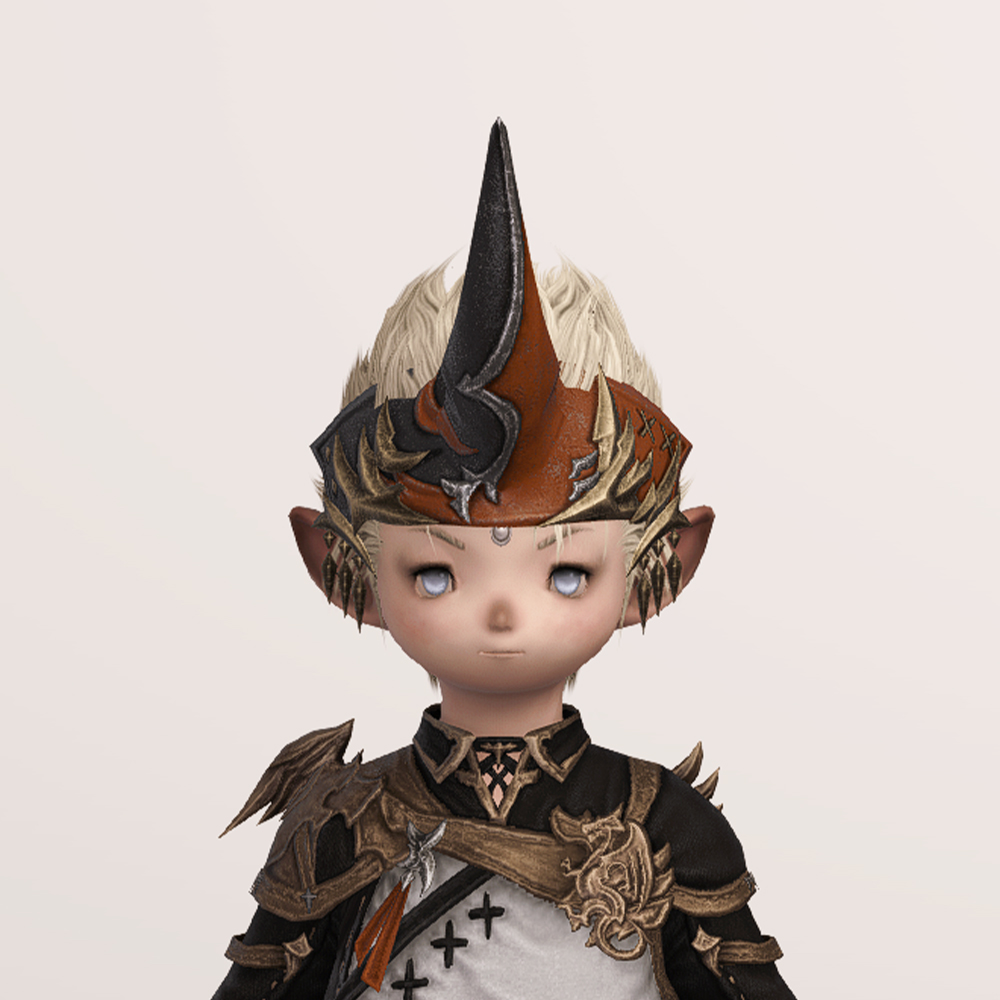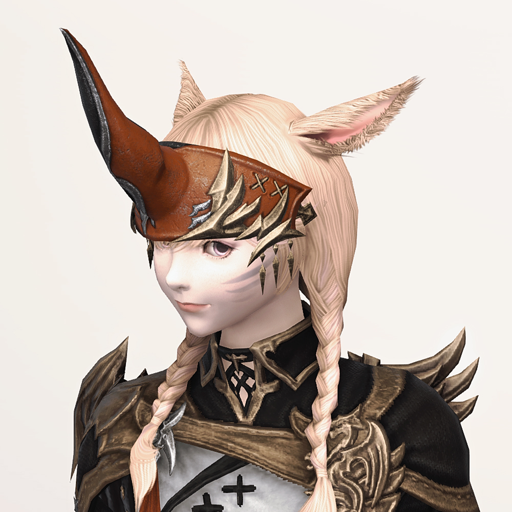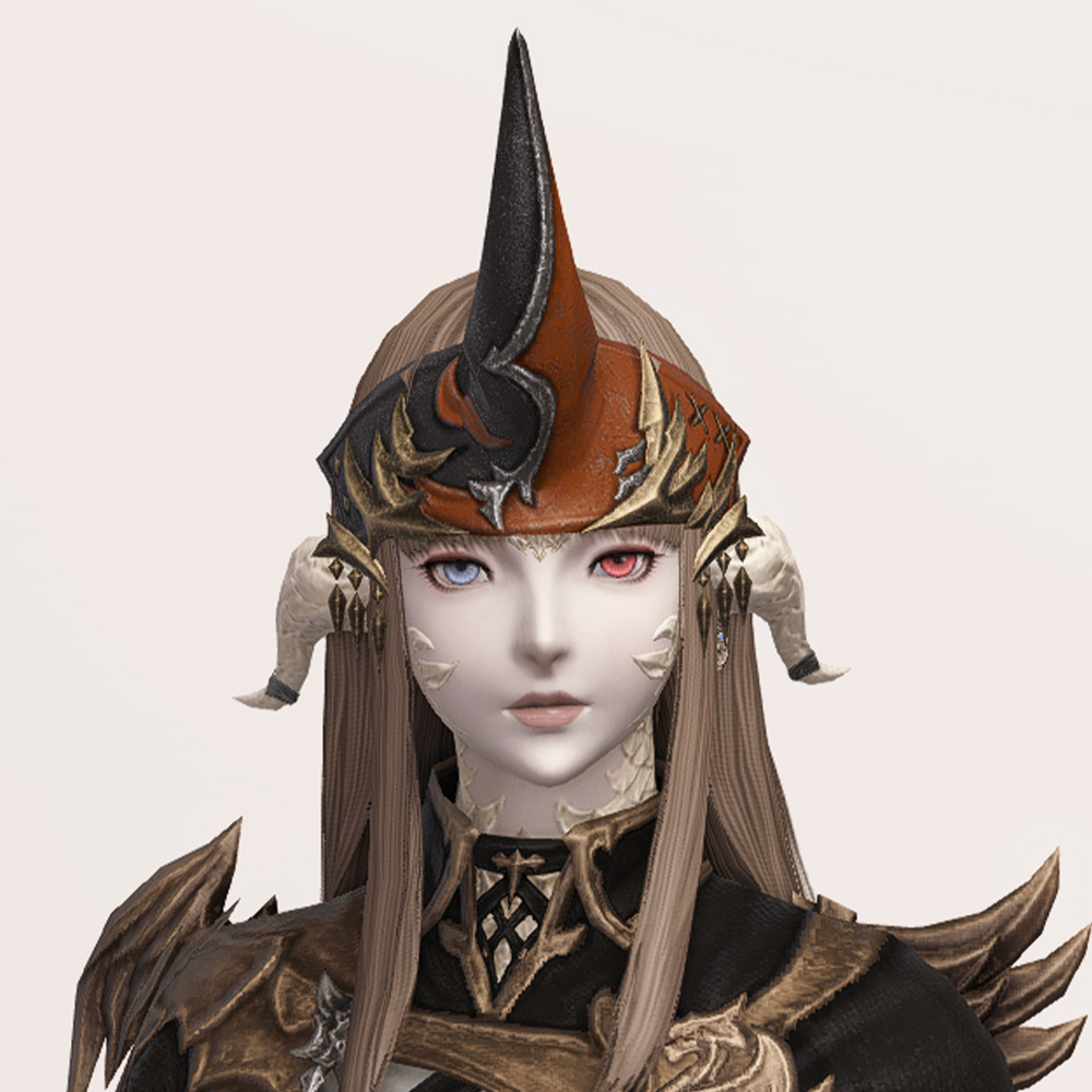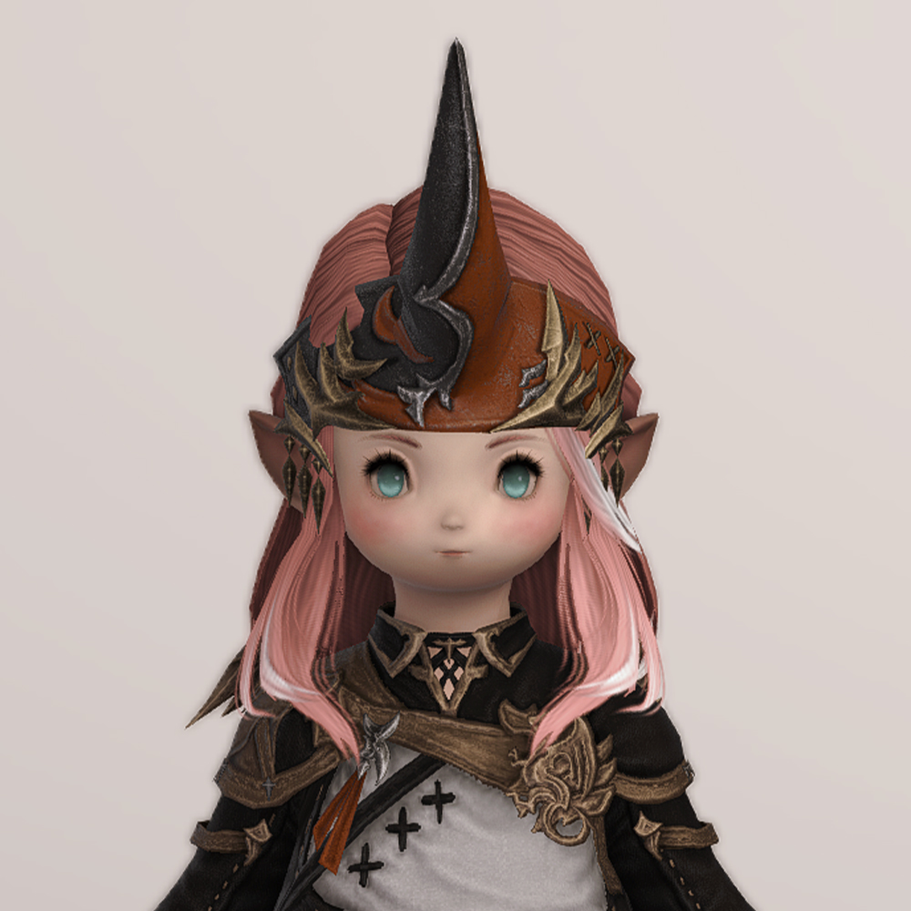 소환사 잡룩에서 빠질 수 없는 요소, 뿔장식입니다. 다른 잡룩에 비해서 예복형식의 옷에 맞춰 살짝 정적인 느낌으로 나왔습니다. 파판9에서는 소환사 종족에 기본적으로 뿔이 달려 소환수나 동물과 마음을 교환할 수 있다는 대사가 나옵니다. 아마 그 때문에 소환사 머리방어구로는 꾸준히 뿔이 나오는 것 같습니다.