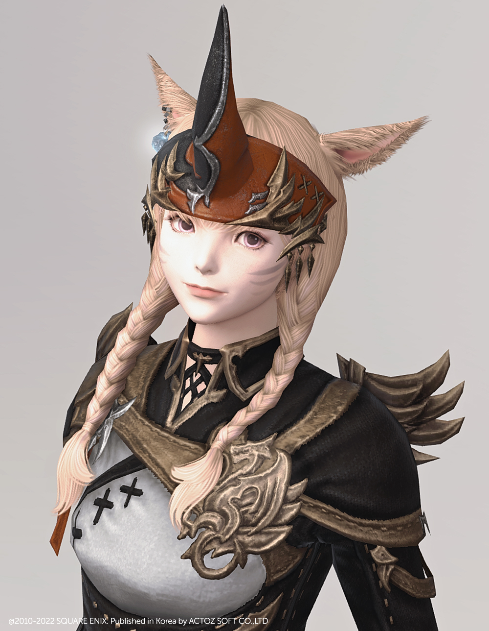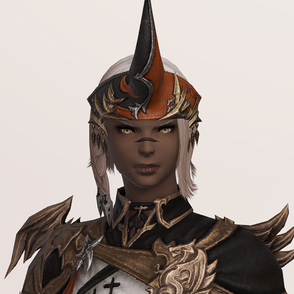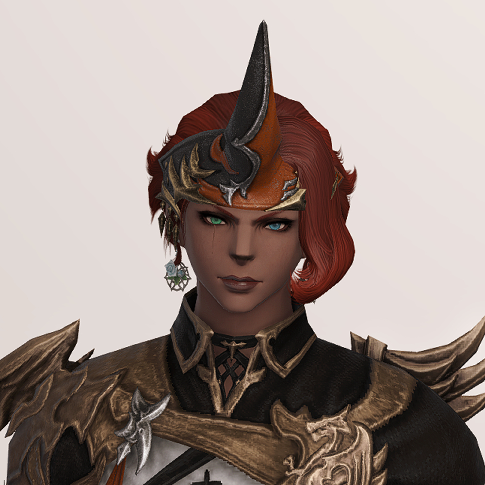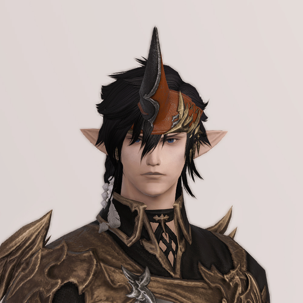 소환사 잡룩에서 빠질 수 없는 요소, 뿔장식입니다. 다른 잡룩에 비해서 예복형식의 옷에 맞춰 살짝 정적인 느낌으로 나왔습니다. 파판9에서는 소환사 종족에 기본적으로 뿔이 달려 소환수나 동물과 마음을 교환할 수 있다는 대사가 나옵니다. 아마 그 때문에 소환사 머리방어구로는 꾸준히 뿔이 나오는 것 같습니다.
