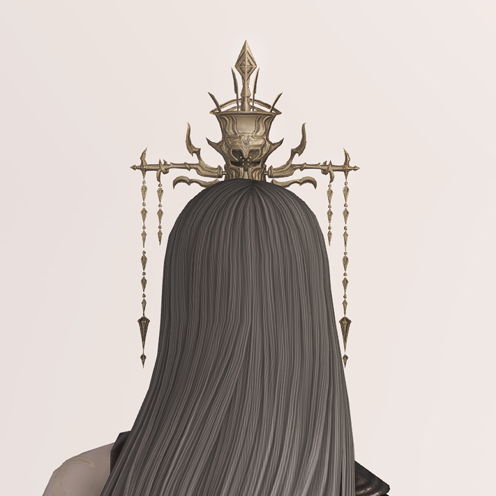 머리 위에 얹어지는, 관모 타입의 머리장식입니다. 나찰이라는 이름에 걸맞게 몸체 부분에는 이글거리는 칼날이 연상되는 장식들이 달려있습니다. 몸체를 가로지르는 비녀의 양 끝에는 금속 장식을 늘어트려 동양풍 특유의 고급스러운 미를 만들어냅니다. 화려한 동방풍 복식에 포인트로 장식하기 좋습니다.