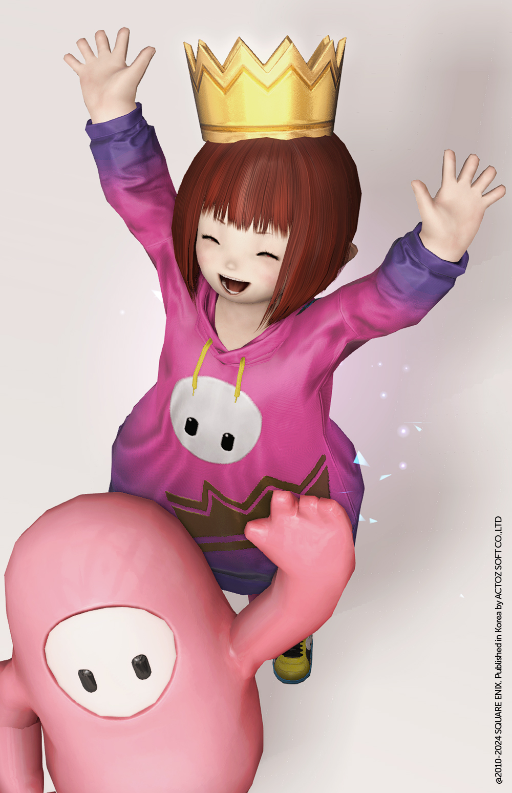 번지르르한 금속광이 돋보이는 왕관입니다. 큼직하게 머리 위에 올라가는 사이즈에 살짝 삐딱하게 얹어져 매우 귀여운 느낌입니다. 사물이 슬쩍 비치는 듯한 표면묘사가 되어있습니다. 경주 1등은 능력으로 이루어야 하지만, 1등의 기분만큼은 타 수단으로 즐길 수 있을 지도 모릅니다. 어떻든, 크기감과 소재감 등을 고려하여 타 아이템들과 매치하는 것도 좋아보입니다.