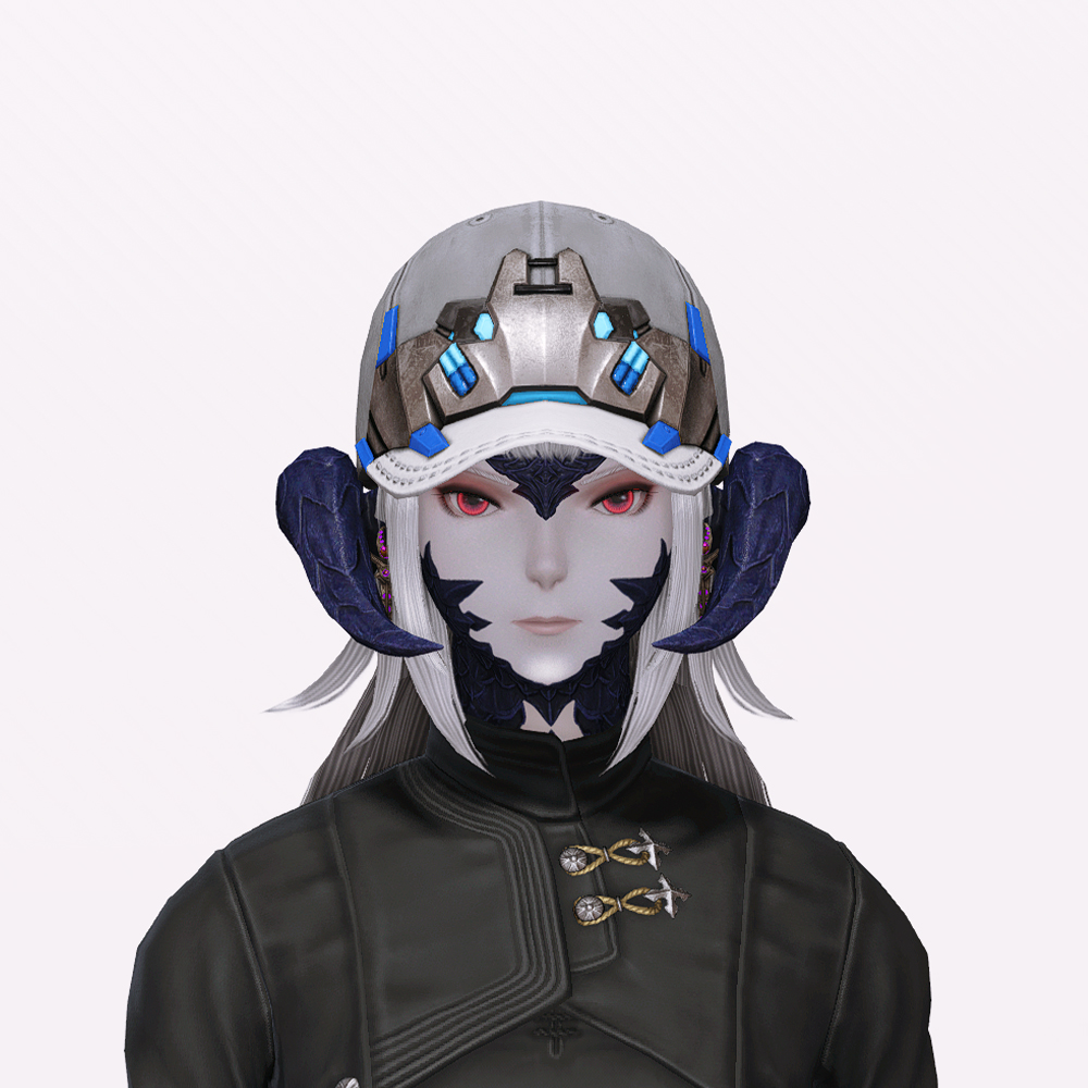 동글한 실루엣이 귀여운 볼캡 위로 금속 보호구를 고정시켜 캐주얼한 느낌에 전투적 요소를 더했습니다. 그 밑으로는 고글과 방독면을 덧쓴 모양새의 가면이 자리잡고 있어 흔히 말하는 '사이버 펑크' 장르가 가진 어떤 코드를 뽐내는 것이 여느 유사 장비와는 확연히 다른 분위기를 띕니다. 얼굴을 드러내고 모자만 매치하여도 독특한 분위기의 캐주얼 룩으로 활용가능해 매력적입니다.