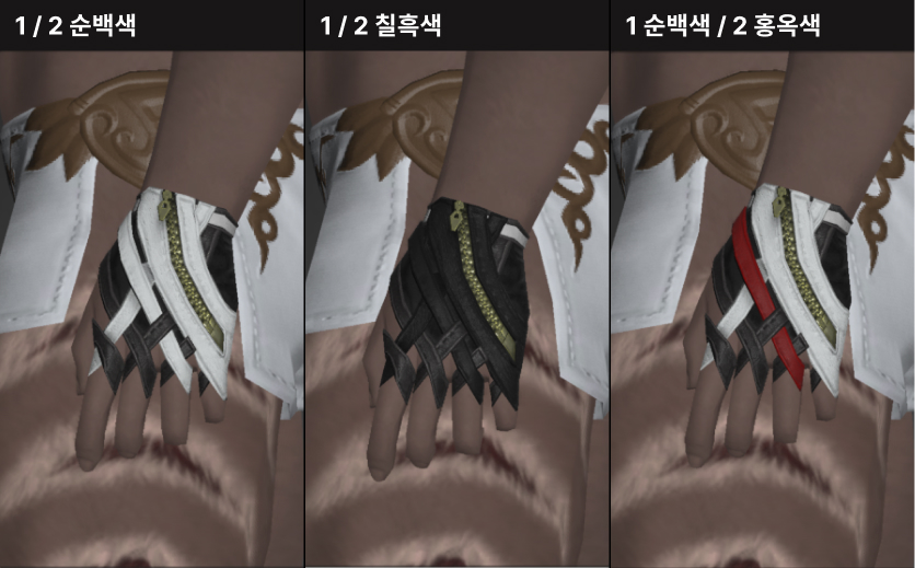 염색1 - 안쪽 검은 부분을 제외한 가죽부분 / 염색2 - 중앙의 포인트 장식 부분