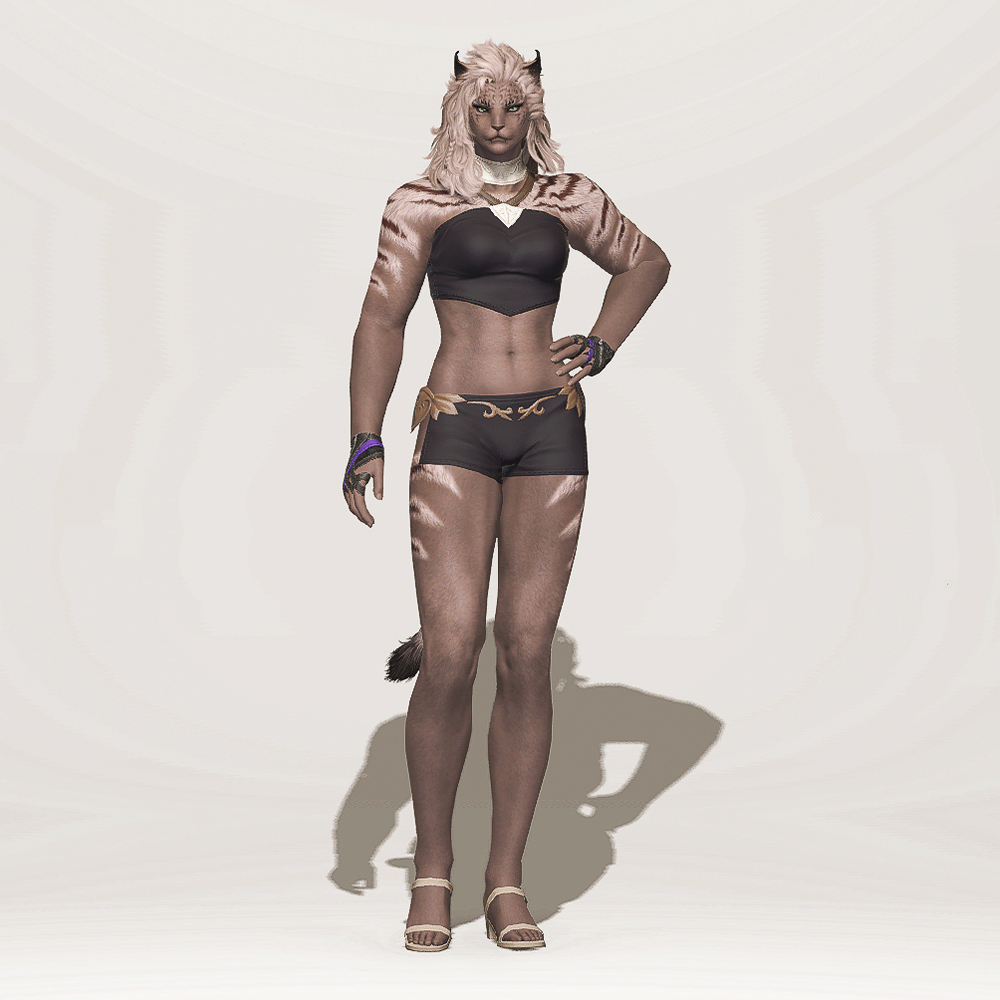 손날을 중심으로 엄지손가락 시작 부근까지를 집중적으로 보호한 나머지를 끈을 엮은 모양새로 감싼 독특한 장갑입니다. 착용에 용이하도록 큼직한 지퍼가 손등에 달린 것은 덤. 장갑보다는 스포츠테이핑 위로 보호대를 착용한 모양에 가까워 보이나, 재질 묘사를 통해 본다면 장갑이 맞습니다. 어쩌든, 다른 패션 조합에 따라 다른 스토리텔링을 유도하여 인상을 바꿀 수 있으니 뭐든간에 매치해보시는건 어떨까요?
