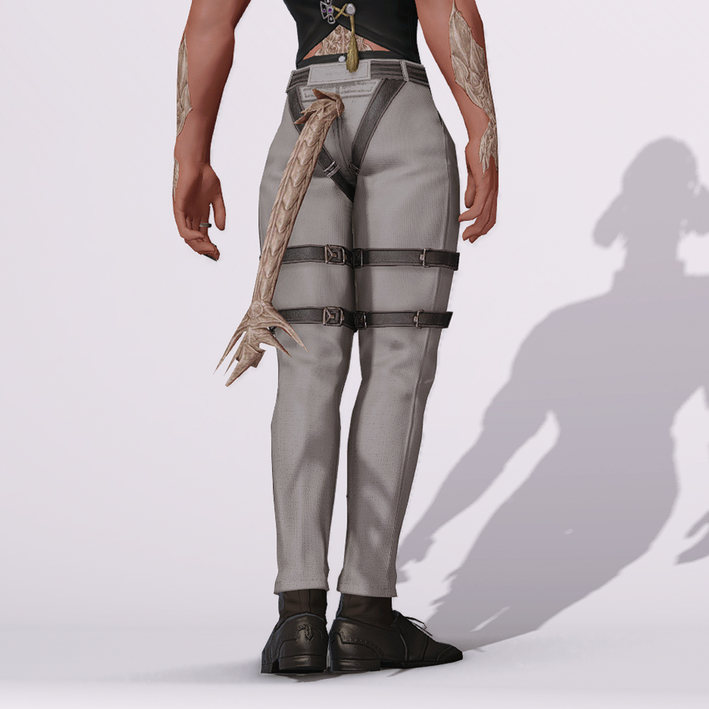 기동성을 높이기 위해선 가끔 미적인 요소를 소홀히 하는 경우가 있습니다. 그러나 이 바지는 최소한의 미감을 살리려 한 점에서 괜찮은 하의일 것입니다. 일단 심플한 바지에 빈티지한 미를 뽐내는 스티치를 더하여 포인트를 준 것이 그렇습니다. 왜냐하면 재봉선은 옆 라인에 있으니까요. 여튼, 거기다 벨트를 가터 형태로 더해 허벅지를 든든히 잡아주어 착용자에게 기능적인 면과 미적인 면 두 가지 토끼를 잡도록 도와주는 센스. 이쯤 되면 골반을 앞뒤로 잡아주는 벨트의 존재조차 거슬리기보다는 패션적인 요소로 받아들여지기 시작합니다. 심플한 하의가 필요하지만 너무 심플하지는 않고 싶다면 딱이겠군요.