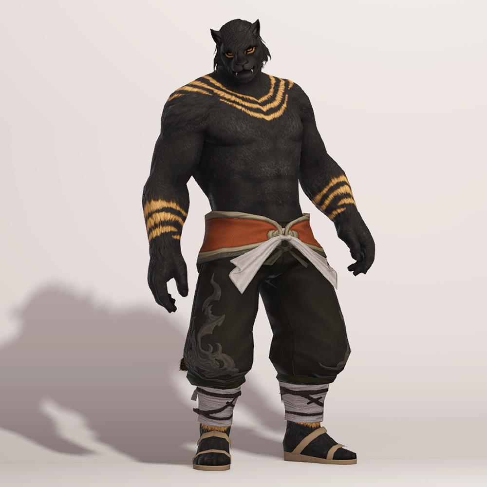 염색시 바지의 무늬와 주황색 부분, 붕대가 염색됩니다. 바지의 무늬는 선명하게 발색되나 주황색 부분은 짙게 염색되며 반대로 붕대는 옅게 염색됩니다.
