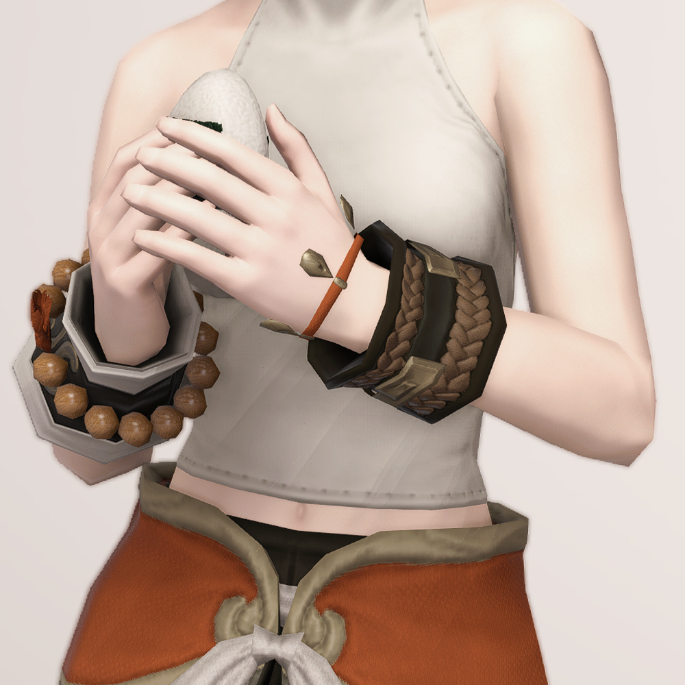 의상을 풀셋으로 입을 경우 얇은 끈팔찌 부분만 보이며 나머지부분은 소매에 잡아먹힙니다.
