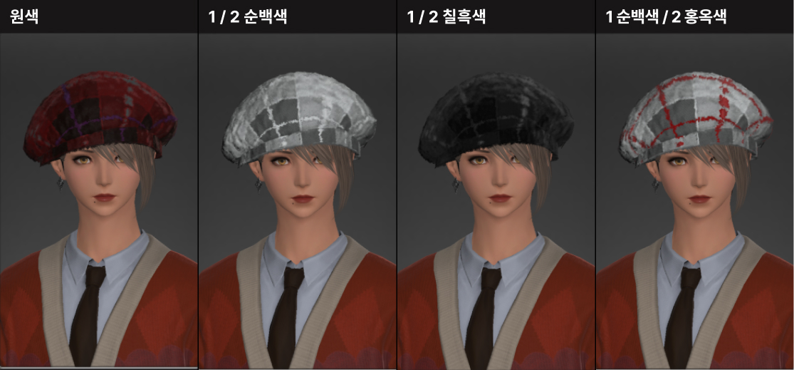 전체 염색 부위는 동일하게 적용되며, 리본 장식으로 보다 러블리한 분위기를 연출하고 싶다면 ‘포근한 베레모’를 선택해 보세요. 발색이 매우 선명한 편이라 염색에 따라 다양한 무드를 연출하는 재미도 충분합니다.