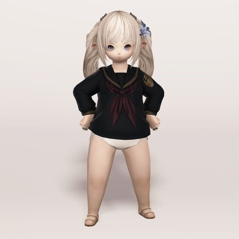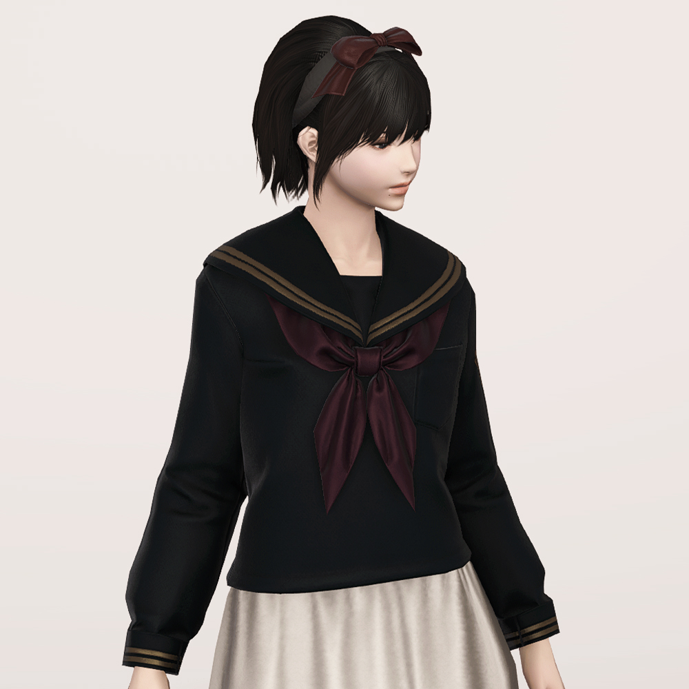 밝은색 염색 시 세일러 카라 부분은 회색에 가까워지며, 리본색은 세일러 카라의 색을 따라갑니다. 금색 라인은 염색되지 않습니다.