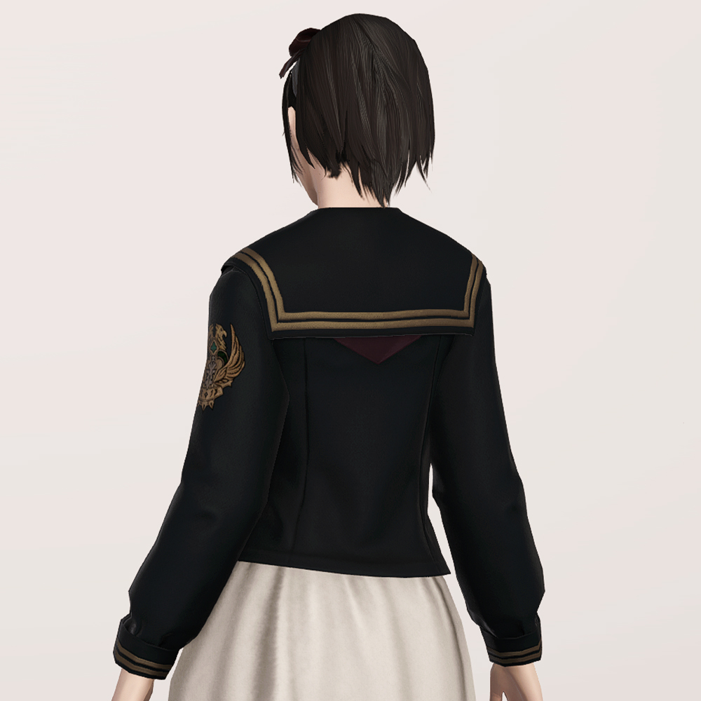 흑세라라고 불리는 칼라포인트의 세일러 군복에서 유래된 깔끔한 느낌의 정장 상의입니다. 전체적인 느낌이 정갈한 느낌이 들며, 허리라인이 짧게 떨어져 루즈한 느낌없이 다양한 하의와 매치할 수 있는 장점이 있습니다. 학생 상의라는 이름답게 다른 학생복과 입어도 좋으며, 핏좋은 하의와 함께 해군느낌을 좀더 가미하여 코디하는 것도 좋습니다.